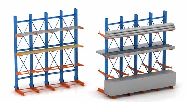 懸臂式貨架對于存放笨重、零散或其它特殊的產品,是較理想的解決方案。懸臂式貨架有單臂和雙臂之分,高效存儲木料、管材、長條物等類似產品。懸臂式貨架可由單個立柱片單元配以懸臂通過水平拉桿、斜拉桿等連續(xù)組成多個單元系統(tǒng)。 根據(jù)承載能力可分為輕量型、中量型、重量型三種。貨物存取由叉車、行車或人工進行。可添加擱板,適合空間小,高度低的庫房,管理方便,視野寬闊,與普通擱板式貨架相比,利用率較高;此類貨架多用于機械制造行業(yè)和建材超市等。